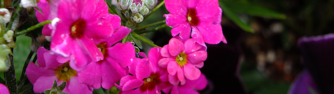 お家のお庭でプリムラ アラカルト、ストック、ヒューケラ、サザンクロス、マラコイデス