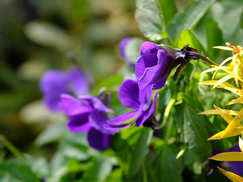 お家のお庭でビオラ3つ、パンジー2つ、ビオラ