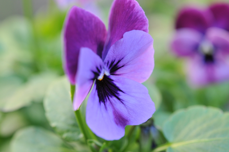 ・ビオラ、パンジーを入れた鉢、プランターで咲いています。