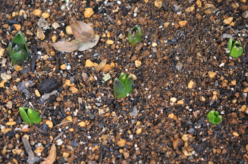 ・ヒヤシンスの芽が出てきました。まだまだです。