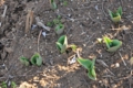 ・畦に昨年埋めたチューリップがたくさん出て伸びています。