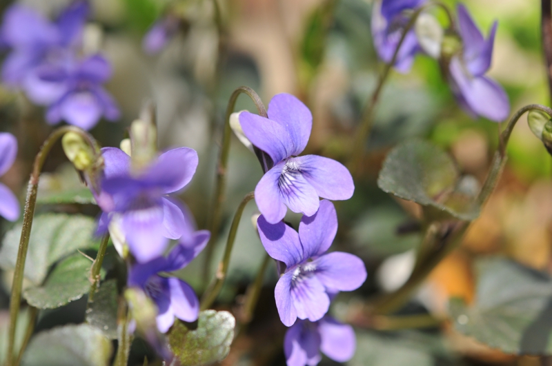お家のお庭で岩ウチワ、すみれ、屋久島姫ウツギの花芽、ディモルフォセカ、水仙2つ