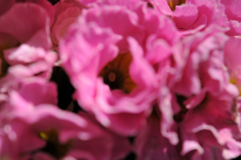 お家のお庭でムーランフリル、クリスマスローズ2つ、桃、マラコイデス