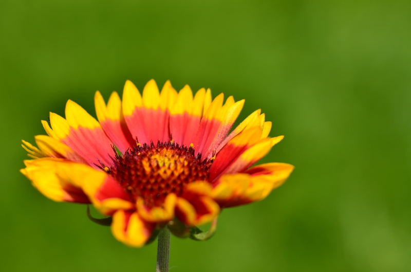 畑で大天人菊、ねぎ坊主、ブロッコリー、きゅうり、ズッキーニ、ミ二かぼちゃ