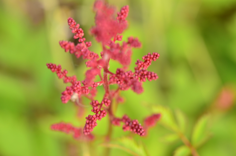 畑でアスチルベ、ベンステモン、ブロッコリー、ミョウガ、ねぎぼうず、きく