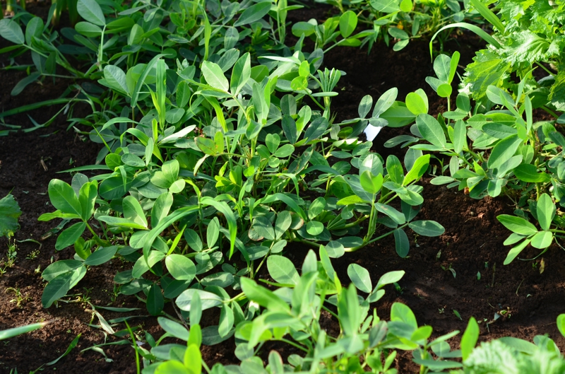 畑で落花生、ナス、グラジオラス、スイカ、ガーデンのお花、ベルガモット