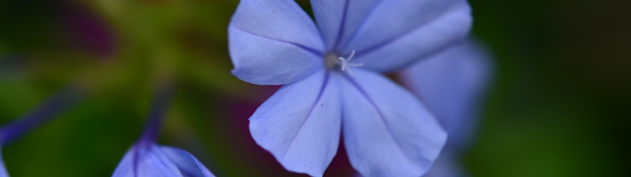 お家のお庭でクローバー、ハイビスカス、ニチニチソウ、ルリマツリ、ヒガンバナ、オクラ