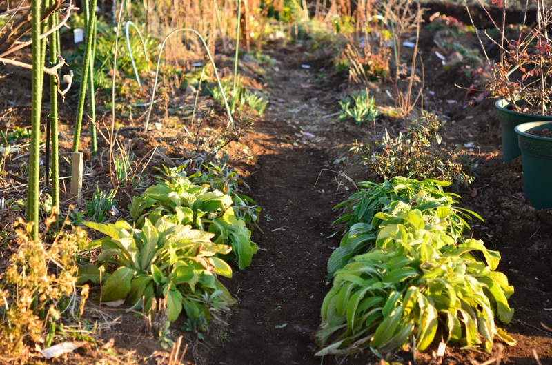 畑は宿根草の整理と買ってきた宿根の植え付けだけで時間が過ぎていきました。モナルダ、ヒソップ、セージ類の枯れた茎の伐採、藤の枝の整理と誘引のし直しぐらいでしょうか。たいしたことしていませんが、日が傾くのが早いので短く感じます。