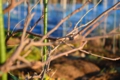 畑でブルーベリー、藤の枝、ロゼット状の宿根、ルピナス、ミント、ユキヤナギ