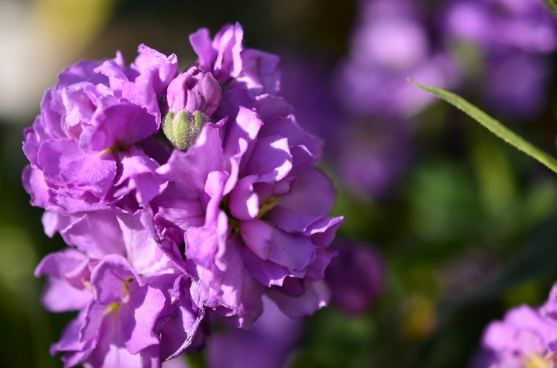 お家のお庭でスイセン、ジンチョウゲ、ストック3つ、ジュリアン
