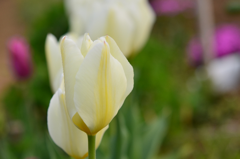 お家のお庭でチューリップ2つ、ドイツスズラン
