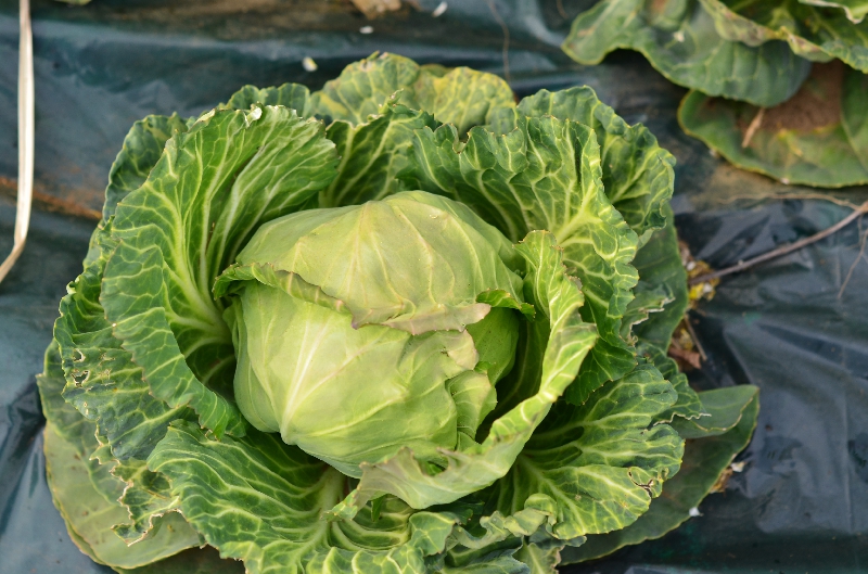 畑で菜の花2つ、キャベツ、藤の花芽2つ、だいこんのお花