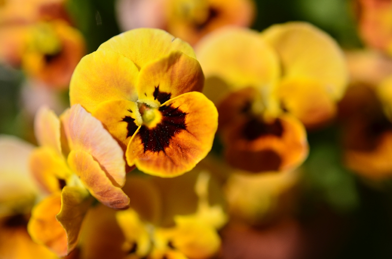 お家のお庭でノースポール、ポロニア、デージー2つ、アリッサムとビオラ、ビオラ