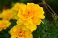 畑でバラの花芽、バラ2つ(ミュージック・ソレイユロマンティカ)、ゼフィランサス、マリーゴールド2つ