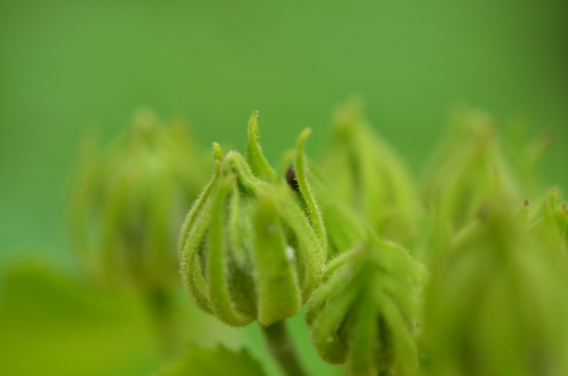 お家のお庭でスイフヨウの花芽、ニチニチソウ3つ