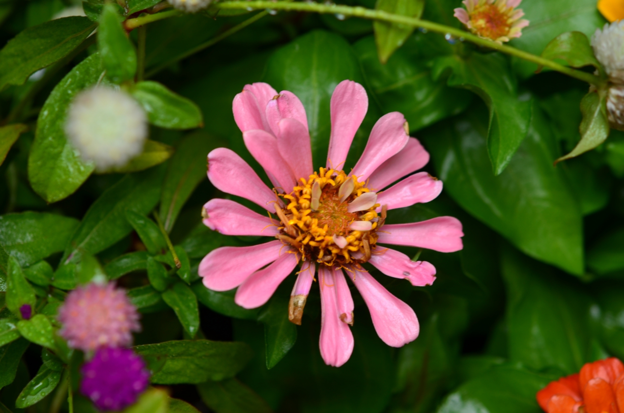 お家のお庭でバーベナ、ナナカマド、センニチコウ、ジニア3つ