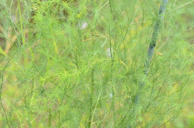 畑でメドーセージ、パンパスグラス、さつまいも、アスパラガスの葉っぱ、バラ、ゼフィランサス