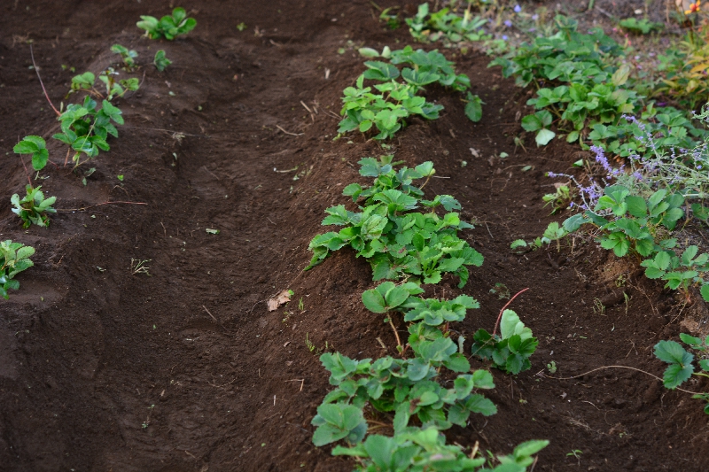 土曜日は午後、日曜日は午前中から畑に出かけました。イチゴのあるエリアは放棄状態でしたが、あちこちに生えていたイチゴのランナー先を一旦外して広範囲にわたって耕しました。