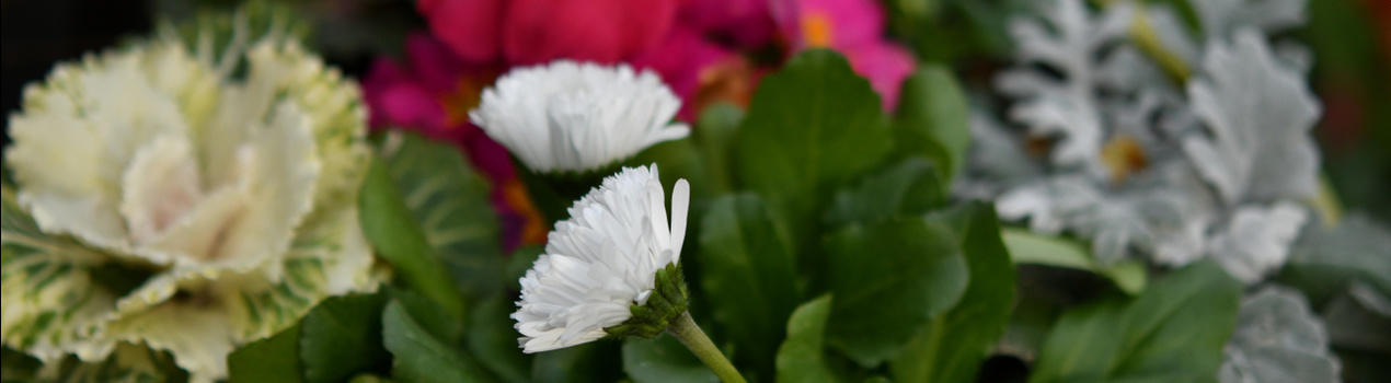 →ジャノメエリカ、ビオラ3つ、メラコイデス2つ、ノースポール1つ