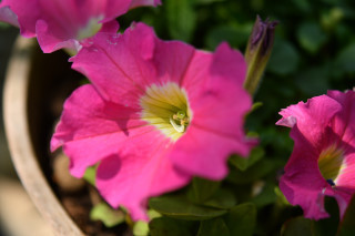 →ペチュニアとカリブラコラを寄せ植えにしました。1つずつなのでバランスが悪い。