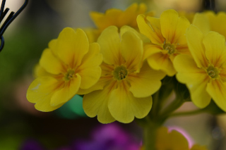 →紫のビオラ 4ポットと黄色のプリムラ 4つを入れました。