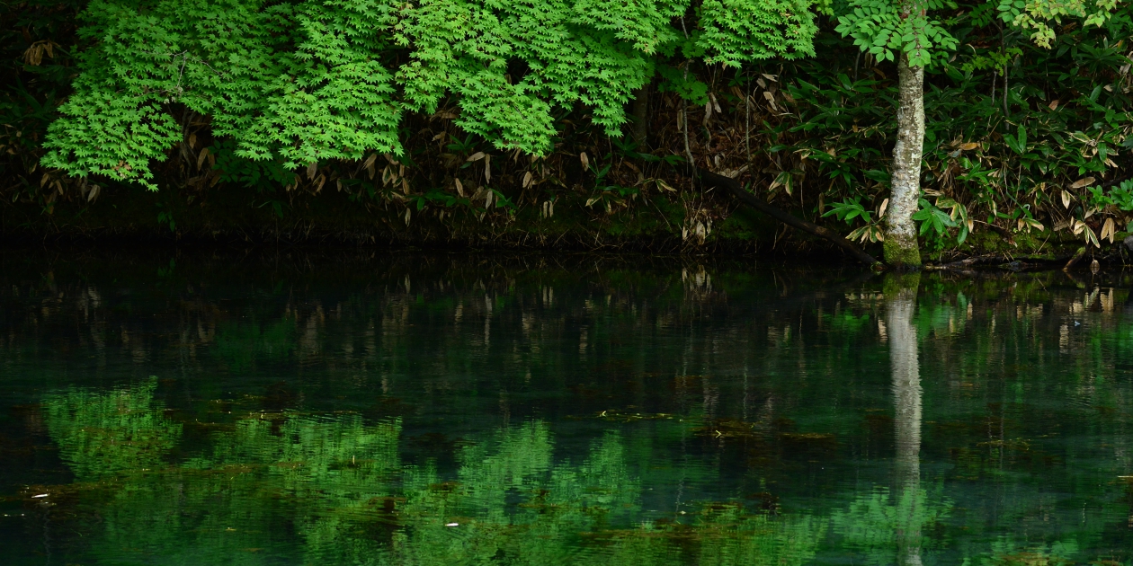 ■富良野市内に入ってMacFANがないかと本屋さんに寄ってみましたが先月号でした。あきらめて鳥沼公園に移動します。雨の日の鳥沼公園ということで、春先も寄っています。わき水の出る場所のきれいさと誰もいない静けさが神秘的に感じられる場所で、こちらの雰囲気は大好きです。静まりかえった池に木々の緑が陰を落とし、静かな雰囲気が伝わります。車は公園横の道を挟んだ富良野側に止めますが、その奥にある春先のミズバショウの群生の森は、4月は明るいですが、今はうっそうと木々の葉っぱが茂っていて暗く入りたくない感じです。入り口だけ覗いてハンゴンソウとしらかばを見て引き上げます。