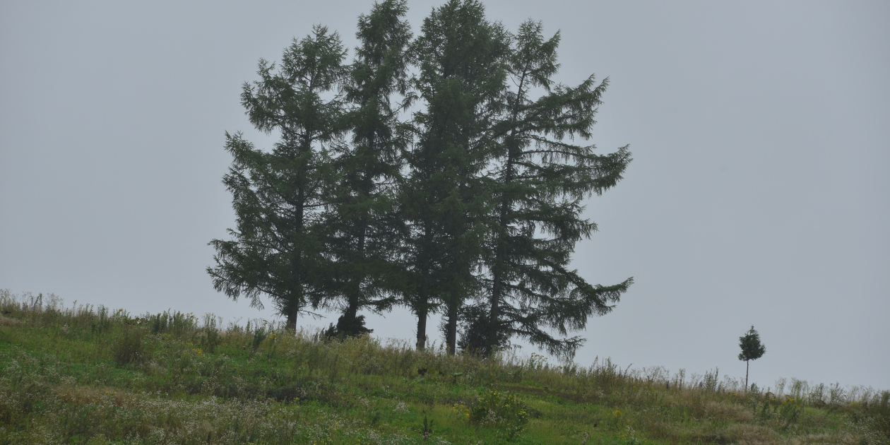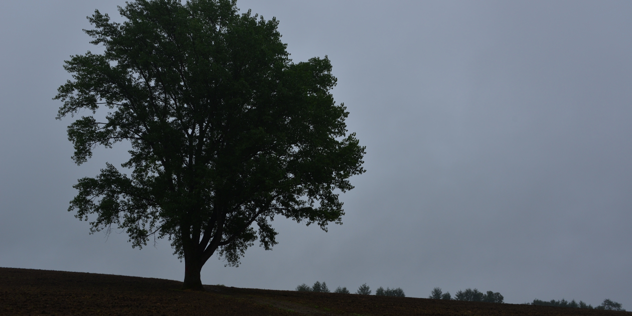 ■この後はピルケの森の手前で川縁に出てみましたが、ガスがあればと期待しましたが、普通の雨だけでした。じゃがいもロードも上がって走ってみましたが、こちらは高いため霧の中でよく見えませんでした。丸山公園から三愛の丘を通ってサイクリングロート゛周辺を巡回し、哲学の木の上側に出る砂利道を走ってちらっと哲学の木を見ていきます。哲学の木がかくれそうな感じの霧の出方でした。