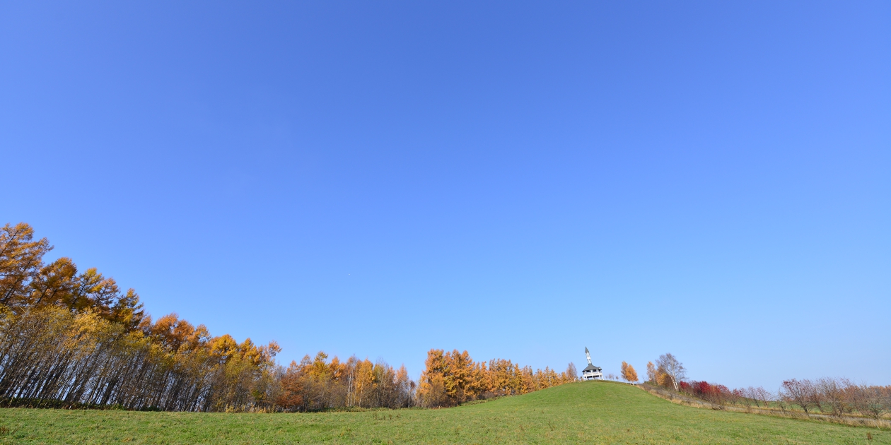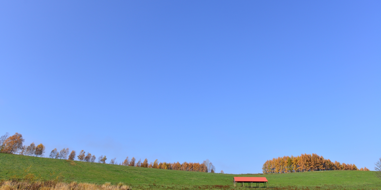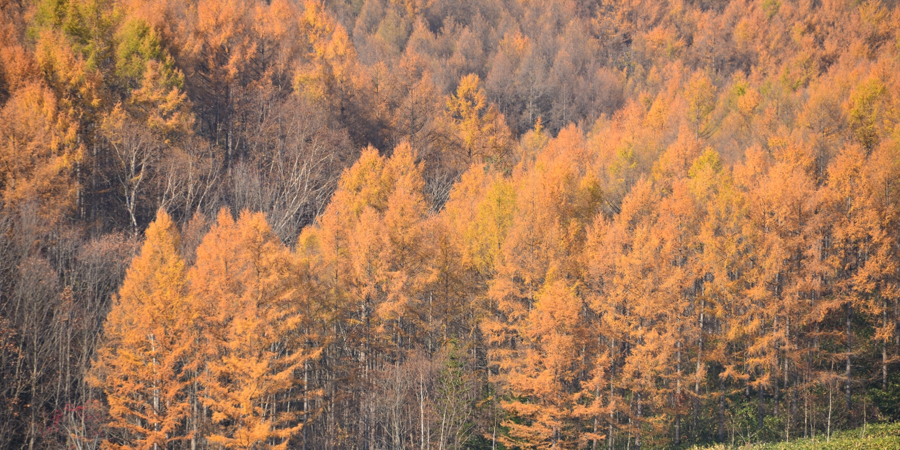 ■朝ご飯を食べた後も濃い霧がまだ市街地を覆っている状態で、試しに最寄りの三愛の丘に道を進めてみると、ちょうど三愛の丘あたりで霧が晴れました。霧から抜けると青空と濡れたからまつがいきいきと輝いていました。三愛の丘の裏側から遠くのからまつと正面左手のからまつを見てから、千代田の丘近くの平行四辺形の木周辺と、右手に広がるからまつをある確度からゆっくり眺めました。そのまま進んで千代田の丘展望所を下から見上げておきます。少し水沢ダム方向に走って先ほど見ていたからまつを下から赤い小屋といっしょに撮ってみます。また、近くにある緑のままの松の木付近から振り返ってパノラマロード全体を撮ってみました。