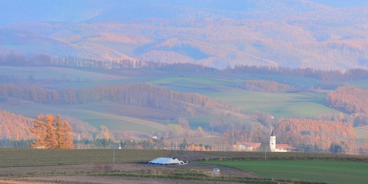 ■まだ日が出ていたので、最後のあがきで上富良野八景の看板がある場所まで上がります。サイロに囲まれたからまつの濃い橙色を撮ることができました。遠くの風景に日が当たらなくなりましたので、引き上げてクリスマスツリーの木まで走ります。