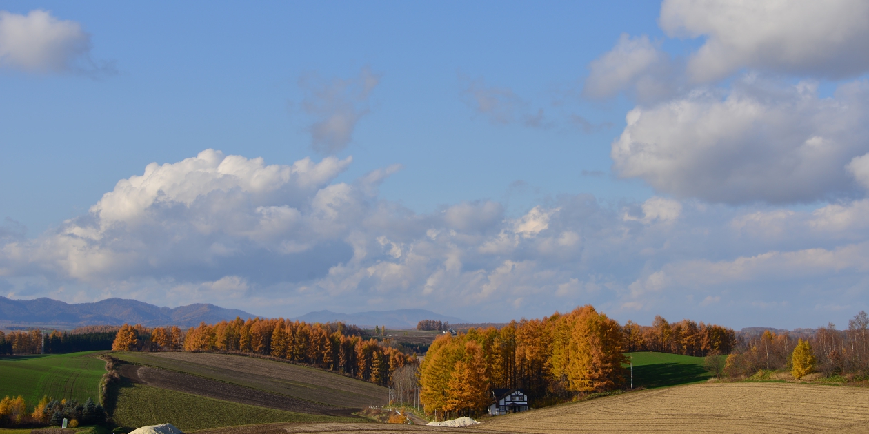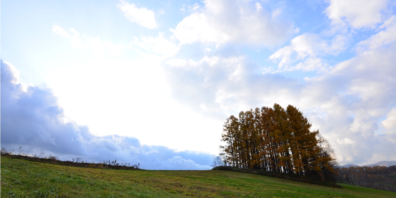 ■美馬牛に入ってトイレがてら四季彩の丘に寄ります。こちらも数人しか人がいませんでした。ちょっとずつ空が開けてきたようです。12:30過ぎですが夕方までにもっと晴れるといいなぁと思いつつ、少しからまつのいいところで待ってみることにしました。