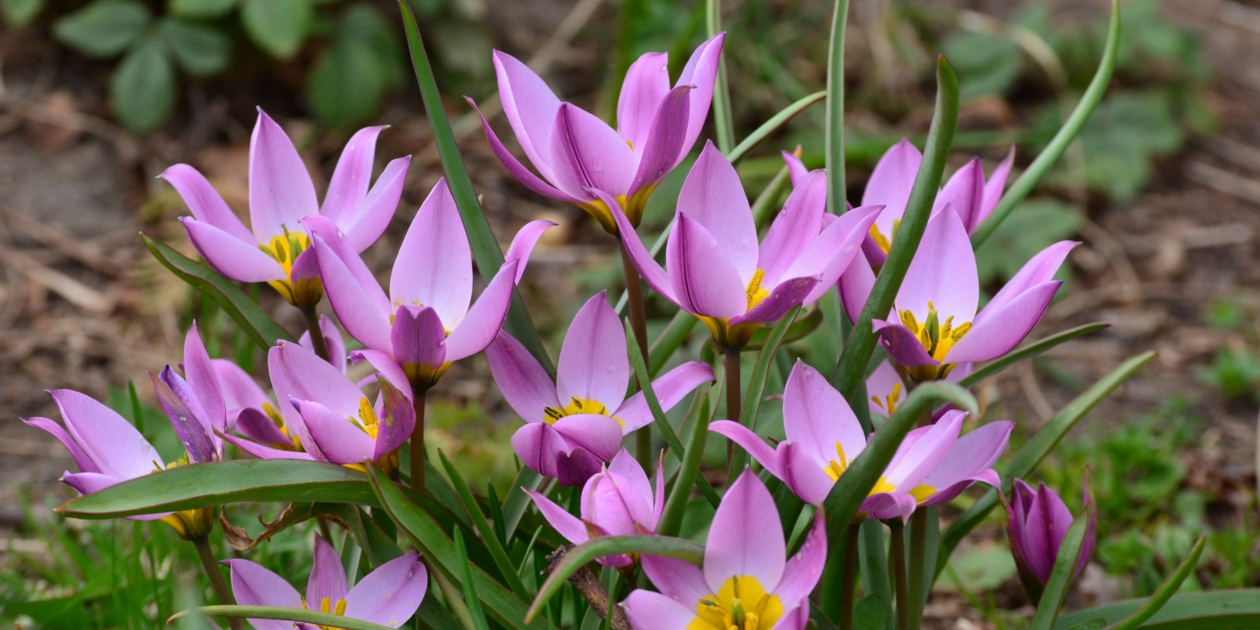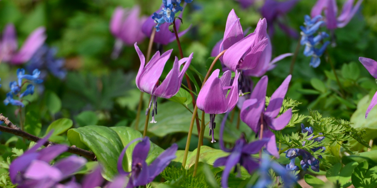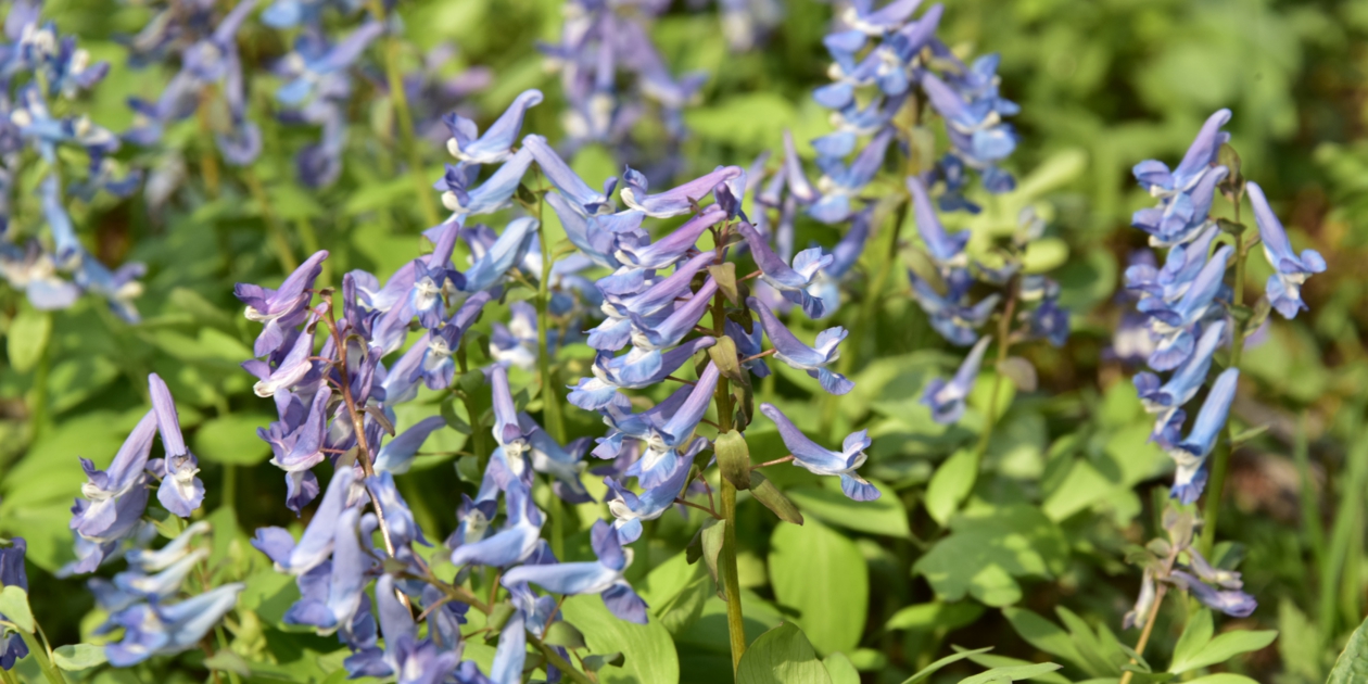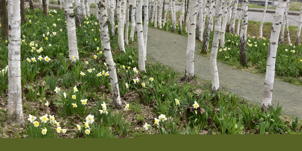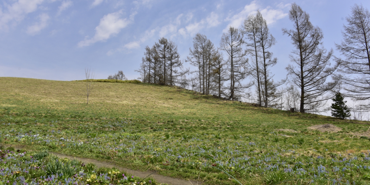 さて、もともとのガーデンのお花は、エゾエンゴサク、クリスマスローズ、カタクリが咲いていますが、射的山下のお花畑にはフリチラリアがありませんでした。お庭の中は、水仙と原種系の小型のチューリップが咲いていたり、プスキニアというかわいいお花があったり、プルモナリアの青色が目立っていました。