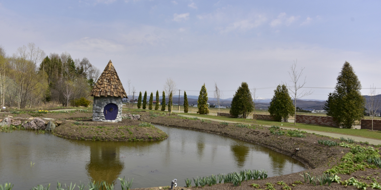 土曜日から開園していますが、そこそこ入場者がいて車も結構駐車しています。昨年作りつつあった拡張されたガーデンですが、入れるようになっていて、しらかばの奥からと手前の石の門から入れるようになっていました。東側にもバス用の駐車場ができていて夏場はこちらにも停められそうです。お手洗いも新しくてきていて、とってもきれいでウオッシュレット付きでした。このお庭はノームの庭と書いてあり、レンガブロックの先の左側に看板があり中に入ります。まだ、昨年から植え始