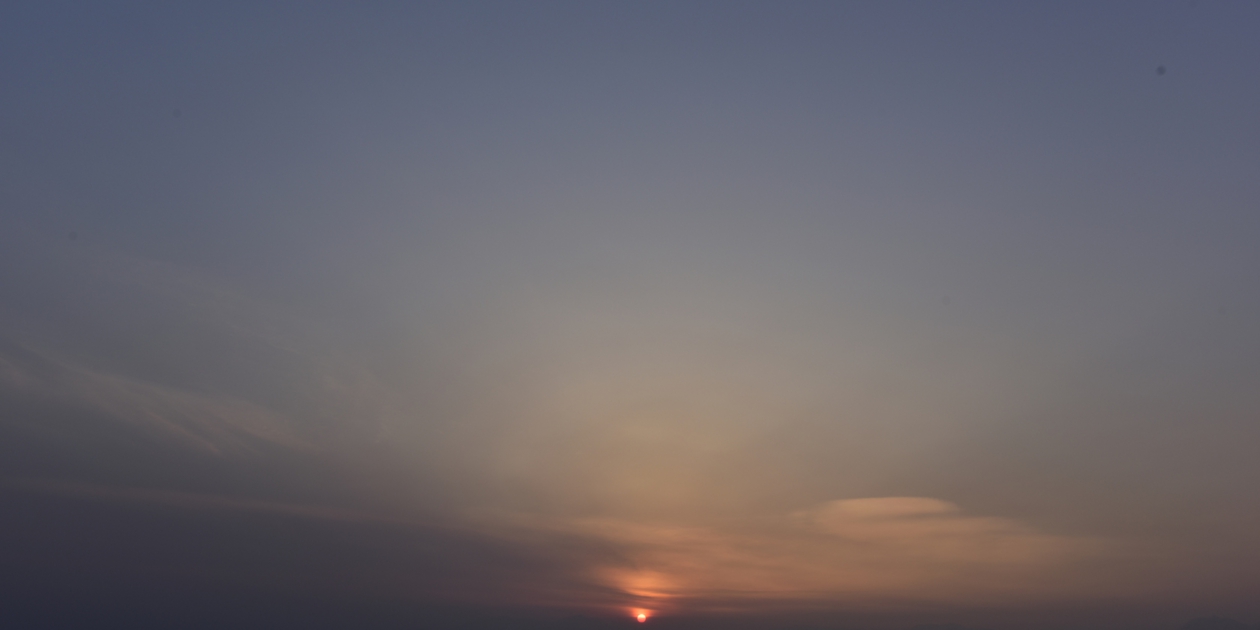 ■まずは朝のお勤めからです。4時に起きて20分頃出発です。赤みはなくて夜が開け始めていましたが、山々ははっきり見えず、そのおかげで山の上の雲にちょっとだけ色づきがありました。春の空気でしょうか、すっきりしない感じで日が昇ってきます。