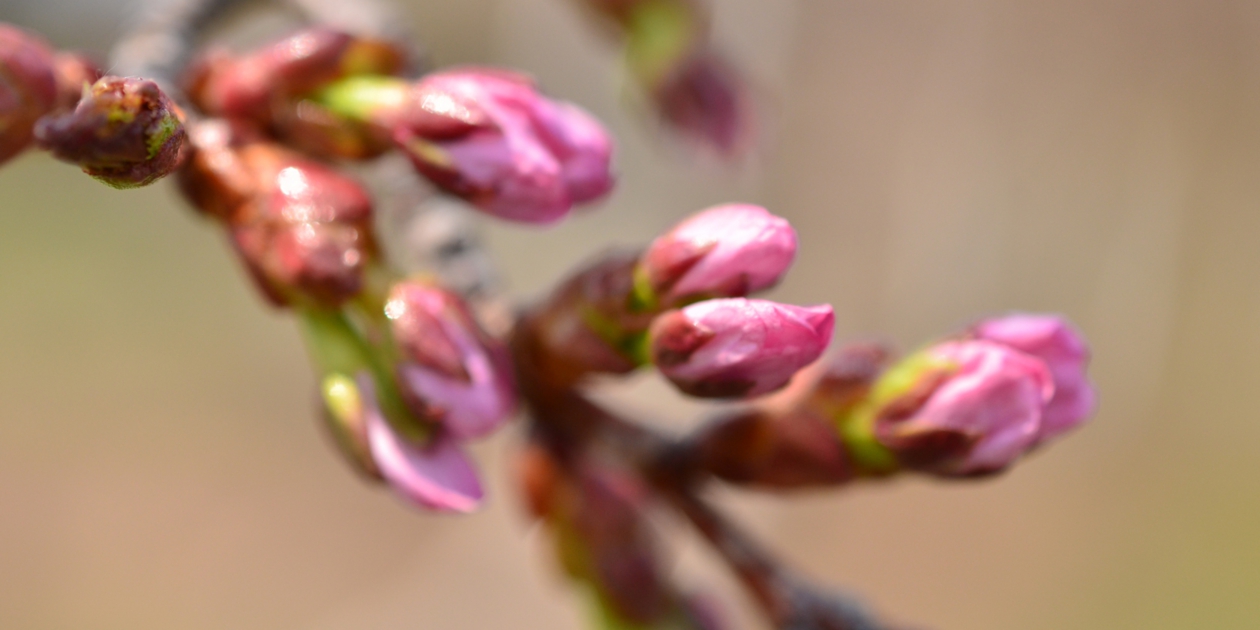 ■ 市街を抜けて朝日ヶ丘公園の桜は、ちょっとだけ赤色が出ていました。下にある公園の桜も似たような状態で、もう少しかかりそうです。