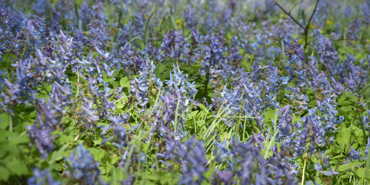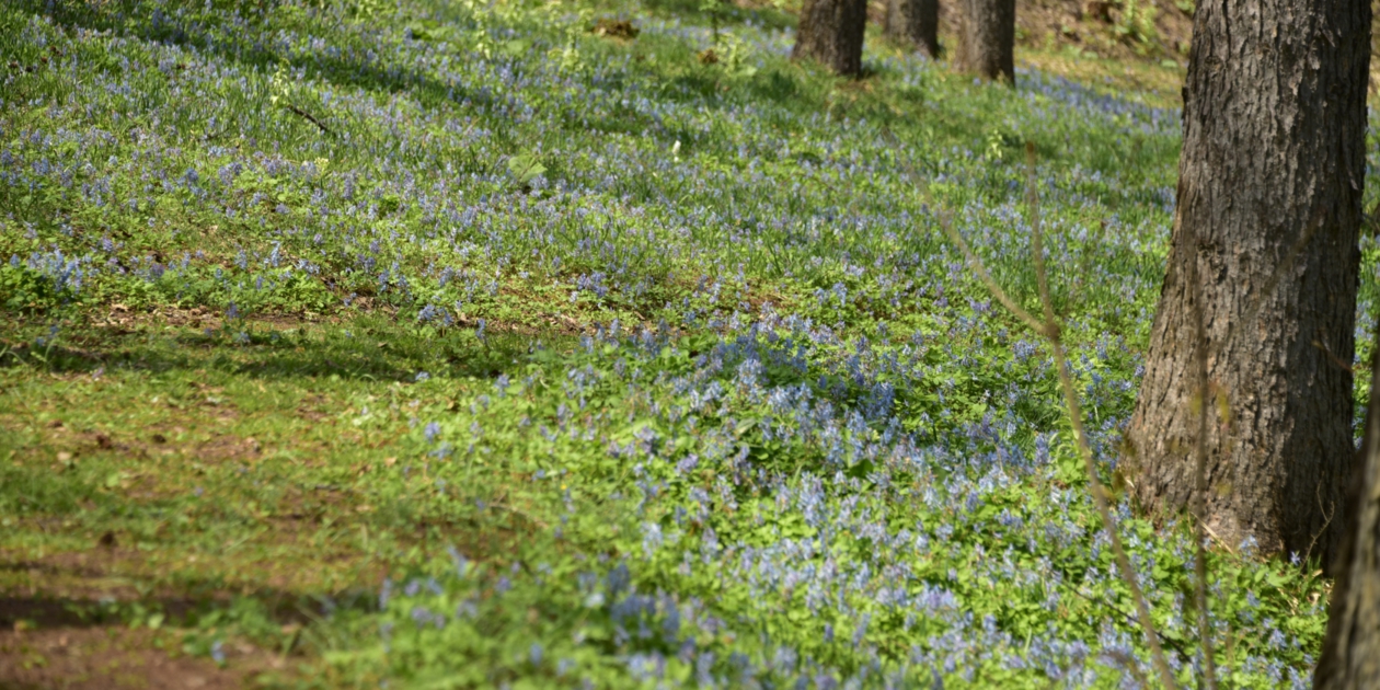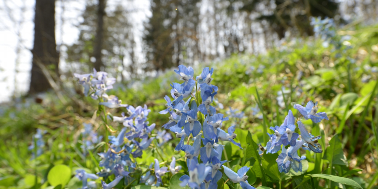 ■ 昨年発見したエゾエンゴサクの群生ですが、今年も健在です。駐車場からおりる階段にも咲いていて、秋にはもみじの紅葉を見ながら歩く場所にこの時だけ咲く青色の絨毯は、とっても目に優しいです。太いからまつの木々のまわに陰ができていて、明暗が同じ場所で見れるので変化が付けやすいですし、誰も来ないのでこの風景独り占めできるのがなんともうれしいです。真横から、下から上へと見上げたり、日陰をバックに明るい場所とセットに撮ったみたりと、長い時間居着いちゃいました。駐車場の真下の桜も数輪咲いていました。ここの桜は枝だけだとさみしいですが、満開になると驚く色合いです。