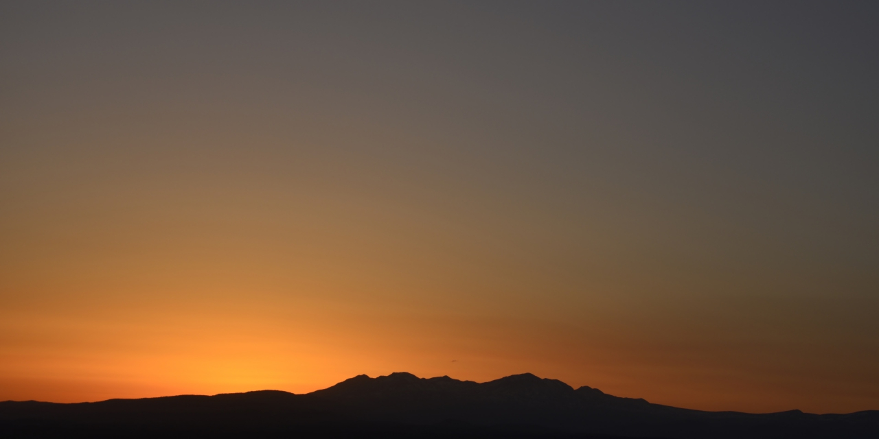 ■ 4時頃から朝日が山肌から出てきました。すこしばかりの赤みというか橙色が出てくれました。いちばん北に近いくらいの場所から日が出てきています。明るくなったタイミングで移動し、哲学の木の横を通って下側にある3本の木を撮ってみました。