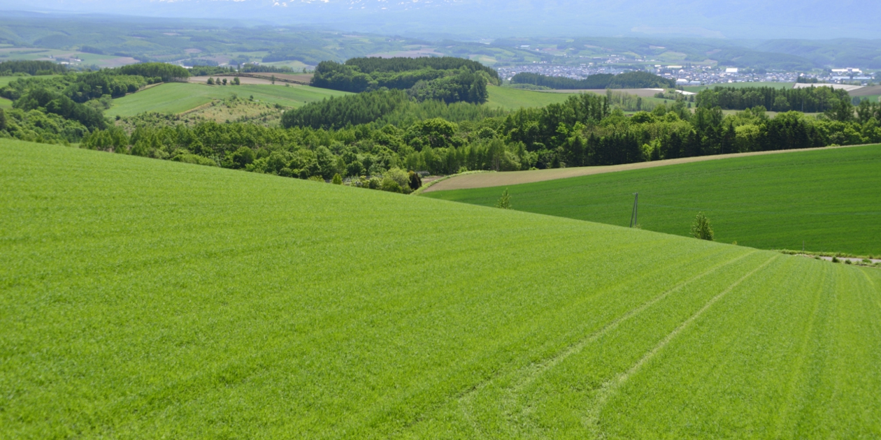 3.少し中富良野方向に進んで、振り返って遠くの丘にからまつが並んでいる場所もちょっとだけ止まって振り返りました。