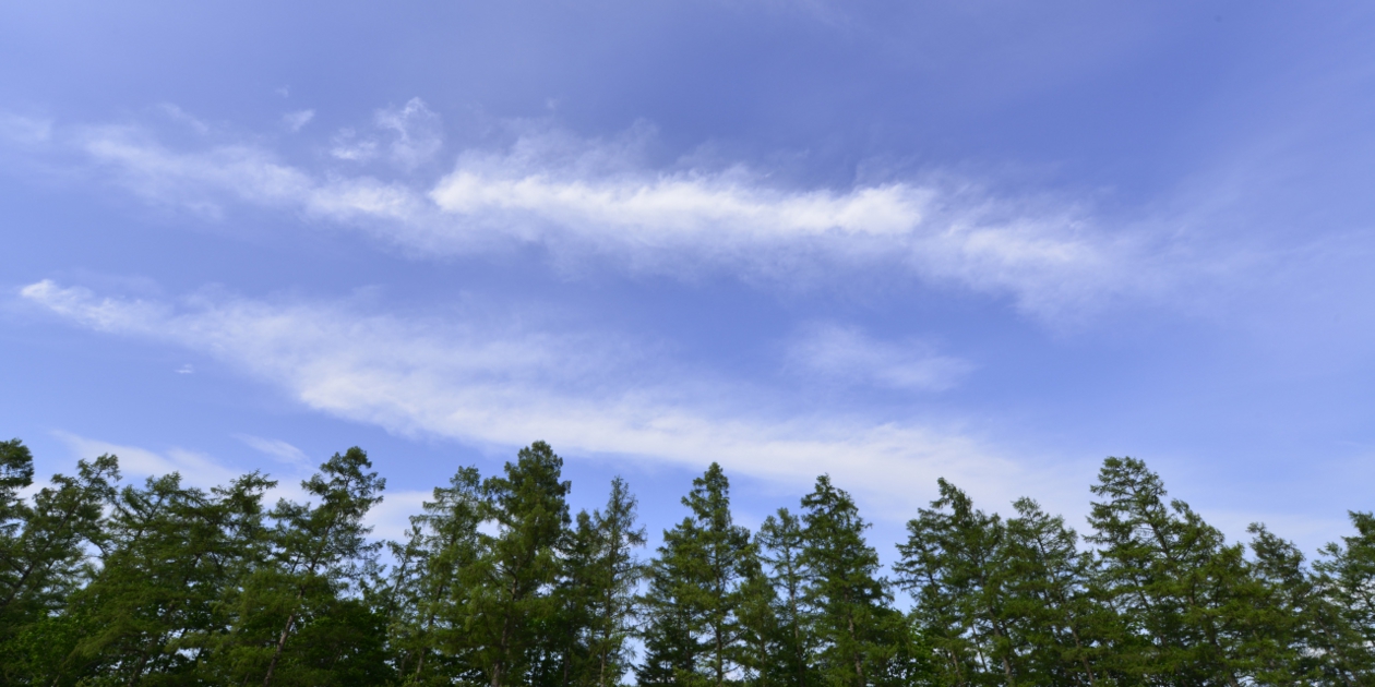 白金に抜ける道を進み、途中から砂利道に入り、日新ダム近くの高い場所にあがり、並んでいるからまつを撮っておきます。近くの牧場の緑もきれいでしたので、こちらも撮っておきます