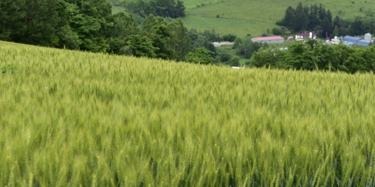 ■ 三愛の丘裏手のしらかばから北側の麦畑はより一層濃く見え目に優しいです。福美沢まで上がり直して、東側にあるバノラマロードも手前の麦越しに青空を入れるととっても映えてきます。