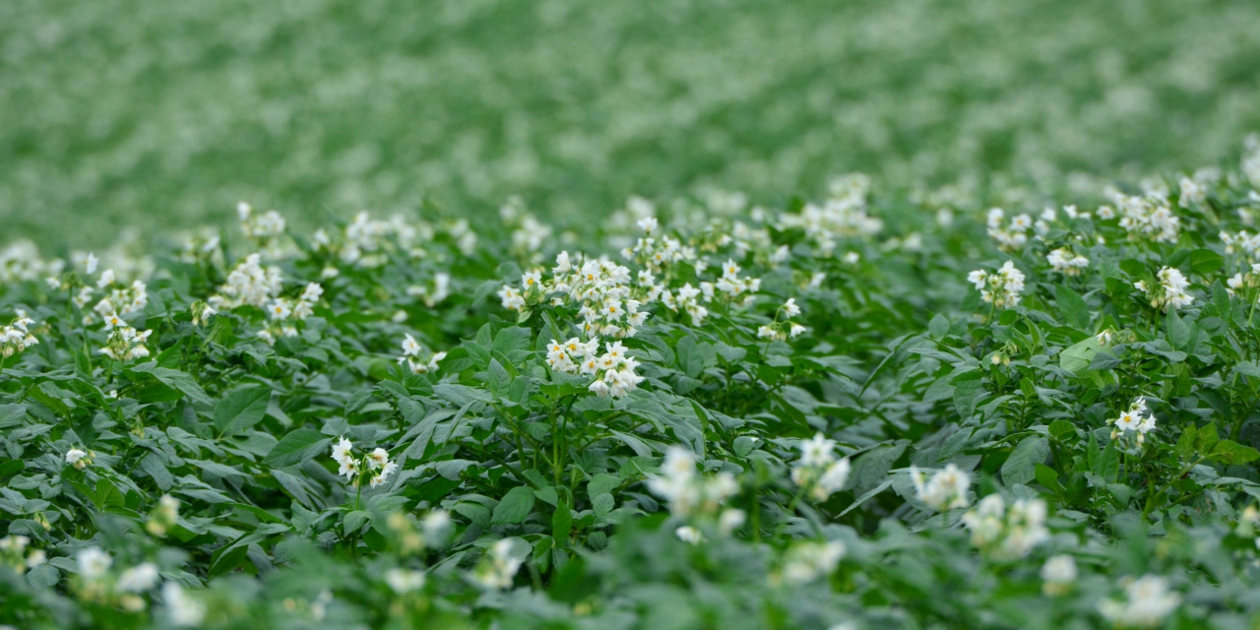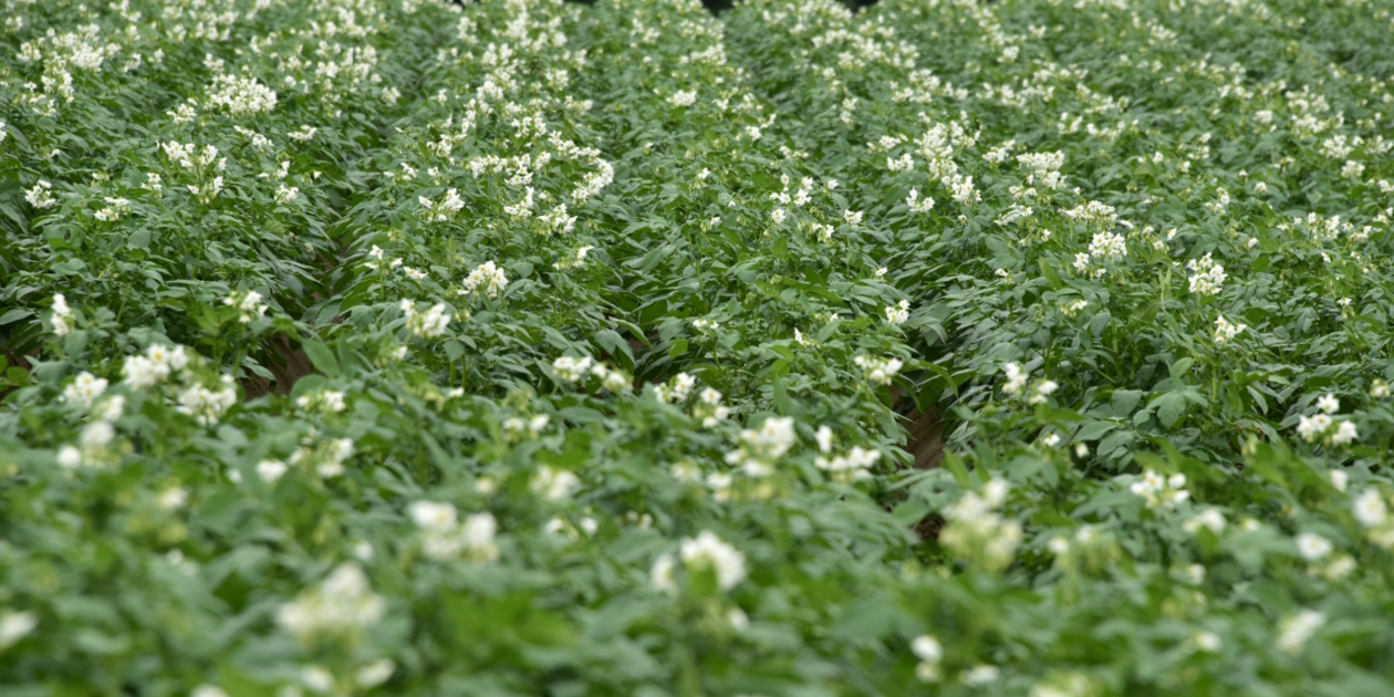 ■ 少し走ってセブンスターの向こう側からじゃがいも畑を昨日に引き続き撮ってみます。かなり奥までじゃがいもがあり、お天気が良かったのか開花が進み、遠くまで白く見えるようになった感じです。
