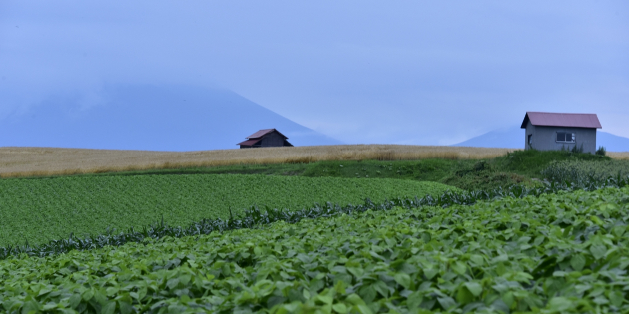 ■ 赤い屋根の小屋の手前はとうもろこしでしたので、現在の所、目線からは小屋がしっかり見えません。新栄の丘から見た方がよく見えるようです。そのまま哲学の木を回る道を走ります。高い側は麦が入っていて、明るい茶色がとっても鮮やかでした。柘真館手前を左に入って、近くの赤い屋根の小屋のまわりだけ麦があって小屋がよく見えます。