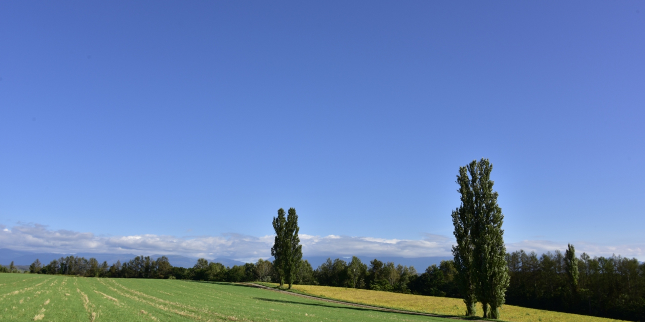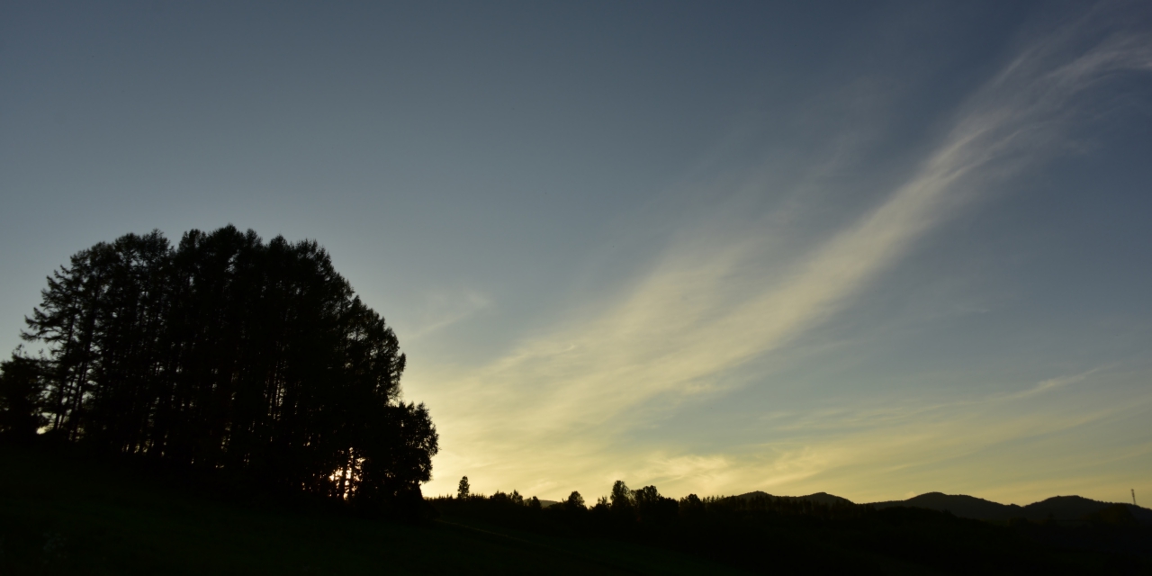 ■ 街までおりて赤羽のポプラを再び通って、新区画ダムでしらかばを眺めて、じゃがいもロードのカラマツを撮って、三愛の丘に上がり、しらかばに入る太陽を見て、パノラマロードにある平行四辺形の木、近くのサイロのある農家さん近くの緑がとってもきれいでうっとりします。